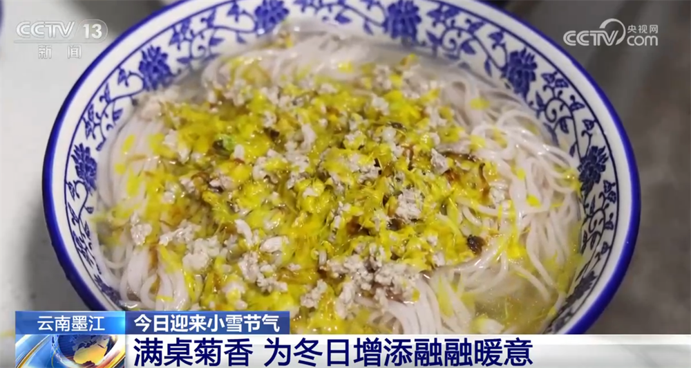 为抵挡冬日枯燥酷寒,在墨江哈尼族自治县联珠镇,乡民们将新鲜的菊花融入老鸭汤、鸡蛋、水饺等各式菜肴中,做出菊花煎蛋、菊花米线、菊花老鸭汤、菊花肉馅水饺、菊花炖排骨等美味佳肴,一桌丰富的菊花宴给冬日增添了几分香气。